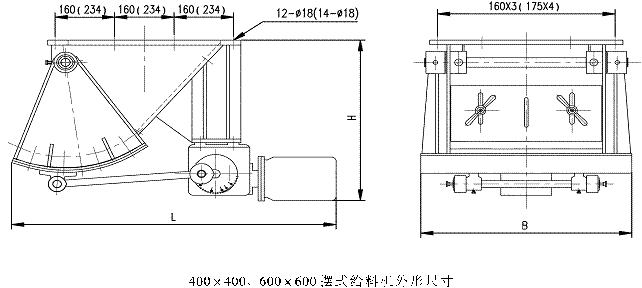 GZB擺式給料機(jī)由殼體、弧板、鄂板、驅(qū)動(dòng)裝置、閘板等組成,當(dāng)電機(jī)開動(dòng)后經(jīng)減速機(jī)、曲柄連桿機(jī)構(gòu)拖動(dòng)弧板作圓弧往復(fù)運(yùn)動(dòng),將煤均勻地卸到其他設(shè)備上。