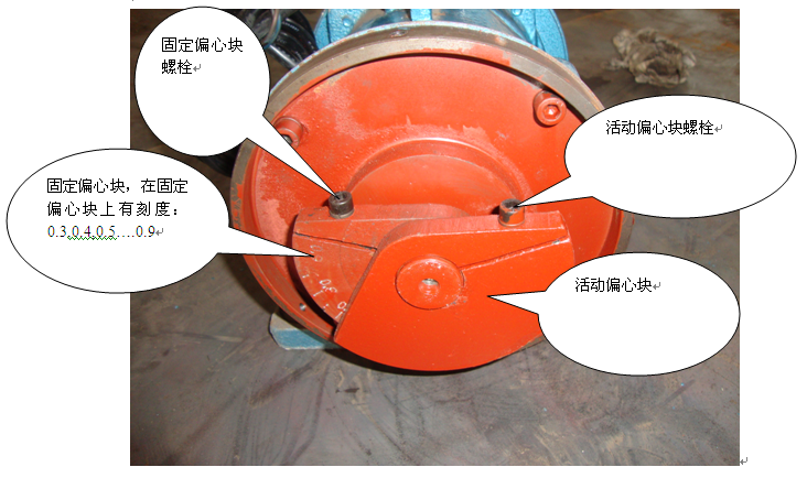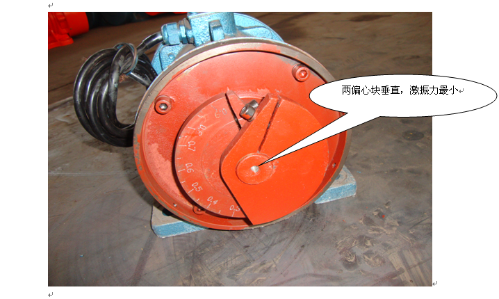 三:松開活動偏動塊上的固定螺栓,調(diào)整活動偏心塊與固定偏心塊之間的夾角,當(dāng)兩偏心塊完全重合時,振動電機的激振力大,當(dāng)兩偏心塊垂直時,振動電機的激振力小。.png)